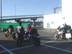 乗船時間になって係員から乗船を促され最初にチャリダーがタラップを自転車を押して上って行く。次はバイクの番になって、私は我々より前に到着していたセローの彼女が一番に乗船するものと思っていたら、彼女は行こうとしないで私に一番を譲ろうとするではないか。どうも彼女フェリーに乗るのが初めてのようで、タラップを上って行くのに自信が無かったようである。