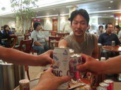 着替えた後売店でアルコールとツマミを購入、場所をロビーに移し無事にこのフェリーに乗れた事に乾杯する。今回の北海道で一番印象に残った事を皮切りに話は始まり、アルコール&飲料&ツマミ等を補給しながらそれは延々と続いていった。