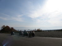休憩を終えた我々は、見はらし台を発って仁賀保高原に再び上って行く。私は切れ込むフロントタイヤと格闘しながら深いバンク角を楽しむが、快感とまでは行かなかった。今年はこれが最後だが、来年は是非ニュータイヤで深いバンク角を楽しみたいものである。