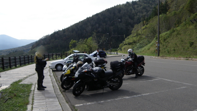 北海道最終日の朝、私は布団から出てそっと窓を開け空を見る。朝靄は掛かっていたが空は青く今日は雨の心配は無さそうである。 今日は根室から苫小牧東港までの長丁場なのだが、途中大雪の三国峠やナイタイ高原牧場に立寄る予定にしていて時間的には結構厳しい予定になっている。 この厳しい予定を可能にしたのが、釧路市内のパイパス整備(自動車専用道)と道東道の阿寒IC〜浦幌IC間の開通が有る。 この新しい道を使用する事で交通量の多い釧路市内や国道38号(釧路〜白糠間)を走らなくてもよくなり、大幅な時間短縮出来ると私は考えたのだが、初めての道ですから行ってみないと分かりませんけどね・・・? 最終日ですので尻が決まっており、何か有った場合も考慮する必要が有るのだが、その場合は道東道を利用すれば何とかなるだろう。 我々は時間的余裕を持つ為、午前7時前には朝食を取り早目に出発の支度をする。 ![]() 一福の朝食 荷物をバイクに積んでいるとお母さんが見送りに出て来てくれた。お母さんと一緒に写真を撮った我々は、花咲港 一福 を後にし、先ずはガソリンを給油する為GSを探しながら落石へ向かう。 お母さんと一緒の写真 この写真が最後にならないように頑張ります。 落石にGSは有ったが、まだ開いていなかった。厚岸までは燃料が持ちそうなので、次は霧多布でGSを探す事にする。道道142号落石〜別当賀間は原生林の中を走るアップダウンが混じったワインディングロードで私の好きな道の一つなのだが、海岸線を走る初田牛〜浜中間の道道142号もまた私が大好きな道である。 太平洋の海岸線を走るこの道は霧につつまれ視界が悪い事が多いのだが、今日の道道142号は晴れて霧も無く根室半島の特徴的な景色や穏やかな太平洋が広がっていました。 我々はそんな景色の中、ワインディングロードを一定のペースで走って行く。 浜中を通過し、我々は霧多布に到着する。私は霧多布で給油を考えていたのだが、最初に見付けたGSは閉まっていた。時間は8時を過ぎており(8時開店のGSが多い?)今日は 「休みの日・・・?」 と思っていたら次のGSで人影を発見、私はそのGSにバイクを入れようとしたら・・・入口にロープが張られていた。 中にいたスタッフさんに聞いたら開店は8時半だそうで、開店までにはまだ20分以上時間が有った。20分も時間をロス出来ないので直ぐに給油してもらえないか頼んでみたのだが、親切なスタッフさんは直ぐに給油の準備(給油機の電源も入れたり・・・)をすると言ってくれる。 我々は休憩しながら準備が出来るのを待ったのだが、他のスタッフさんが続々と出社し準備は一気に整い無事給油する事が出来ました。 今年のSANTOSは大雪山 開店前だったが給油してくれた親切なスタッフさん達。 最終日は雨の心配の無い良い天気です。 親切なスタッフさん達のお陰で給油を終えた我々は、道道123号を厚岸へ向かって走り出す。根室から釧路へ向かうには国道44号を利用するのが普通だが、FUNKYは景色や交通量の少なさ(国道44号も充分に少ないが・・・)から道道123号を使う事が多い。 厚岸で一旦国道44号に出た我々は、尾幌から道道142号に左折し昆布森を目指す。昆布森の名が示すように道道142号では荷台に昆布を満載したトラックが沢山走っていた。トラックの後ろを着いて行くと、道路脇の校庭のような広い場所へ入って行く。 それは昆布を干す専用の場所のようで、森を切り開き砂利を一面に敷き詰めた上に大量の昆布が干されていた。昆布森産の「なが昆布」は食べる昆布のブランド品のようで、煮物料理や昆布巻きに最適な 「棹前昆布」 として有名なようです。 今回は昆布を購入する機会は無かったが、一度機会を作って購入し味わってみたいものである。 私は釧路のコンビニで休憩を取ろうと考えていたのだが、道道142号から国道44号に出てもコンビニは見当たらなかった。我々は国道44号から直ぐ国道38号のバイパス(新しく出来た自動車専用道)に入った為、休憩場所が無いまま阿寒に向かう国道240号に入る。 国道240号には何か有るだろうと探したが、それらしきお店が無いまま阿寒ICに到着、我々はそのまま道東道に乗って本別ICを目指す事になった。 私は道東道のPAで休憩しようと考えたのだが、そのPAが現れない・・・・。道東道の阿寒IC⇒本別IC間は50km位有るのだが、区間の殆どが山の中でその半分はトンネルという道路だった。阿寒〜本別間は無料区間の為か結構交通量が有って片側一車線では追い越しも出来ず、我々はストレスが溜まっていく。 結局PAの看板が現れたのは本別ICの直ぐ手前で、私は本別ICで道東道を下り本別のGSで給油と休憩を取る事にしてそのままPAを通過する。 本別ICを出て国道242号を本別に向かって走っていた時だった。街の入口(制限速度が変わった?)付近で対向車線を走って来たホンダCBR(ヘッドライトからそう判断したが排気量は250?)のヘッドライトが瞬いた・・・!? 道は左に軽くカーブしていたのだが、私はその歩道に椅子